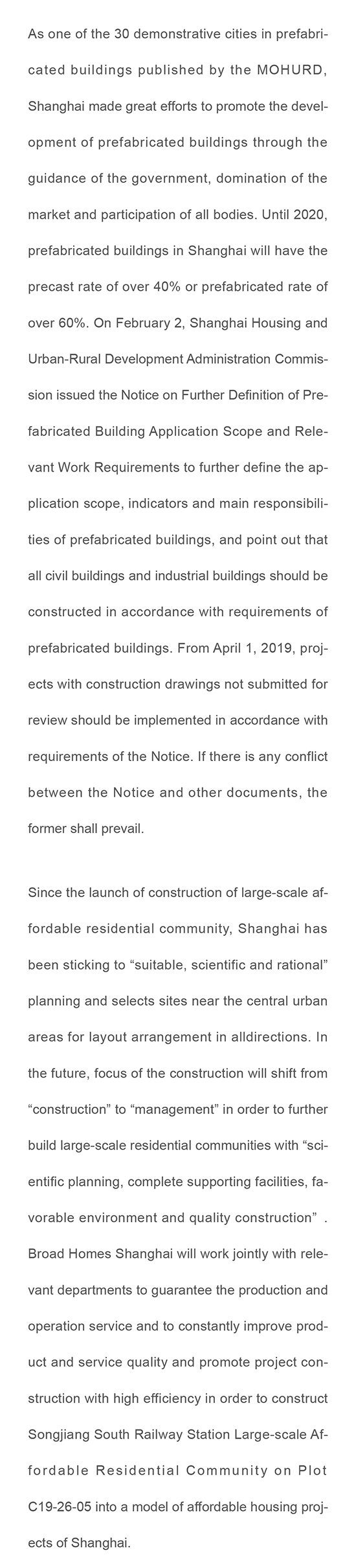 Broad Homes Shanghai Constructed Another Demonstrative Affordable Housing Project Songjiang South Railway Station Large-Scale Residential Community Project on Plot C19-26-05 to be Capped in August