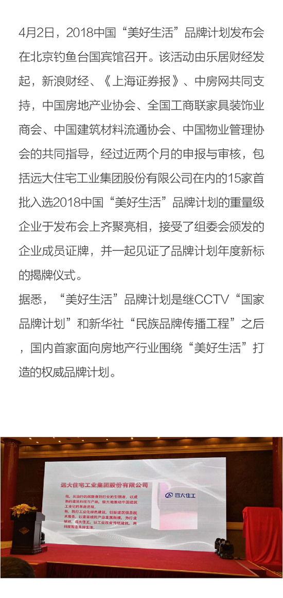 遠(yuǎn)大住工首批入選2018中國(guó)“美好生活”品牌計(jì)劃