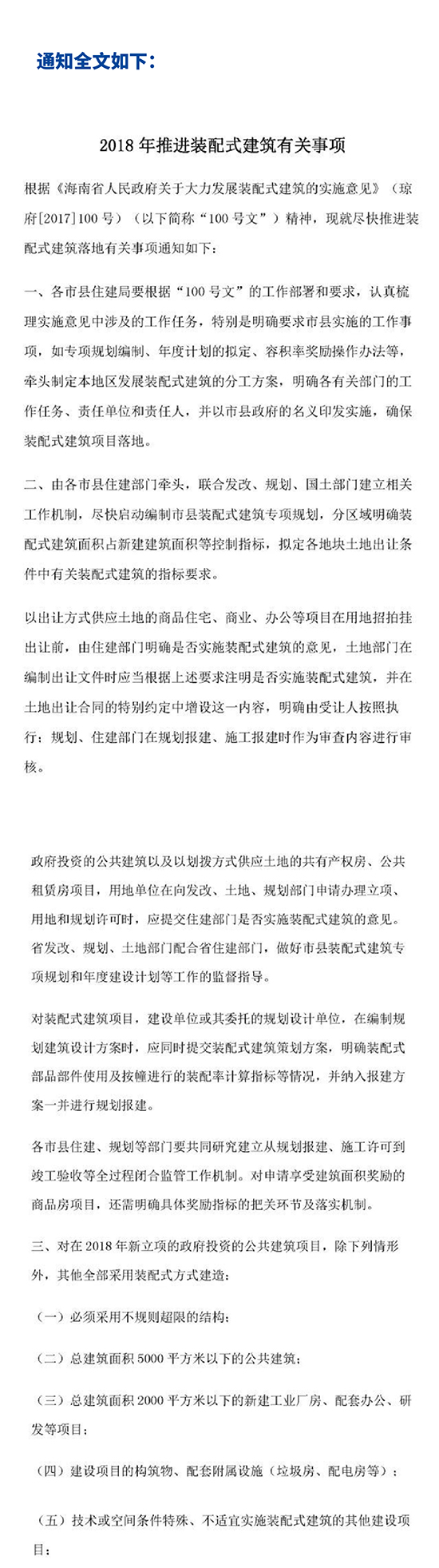 海南推進(jìn)裝配式建筑落地 5000㎡以上公共建筑全部采用裝配式