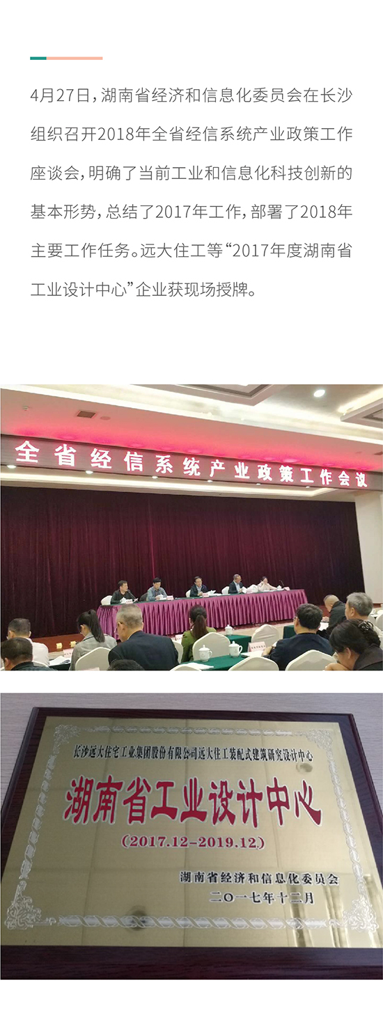遠大住工獲授牌 “2017年度湖南省工業(yè)設(shè)計中心”