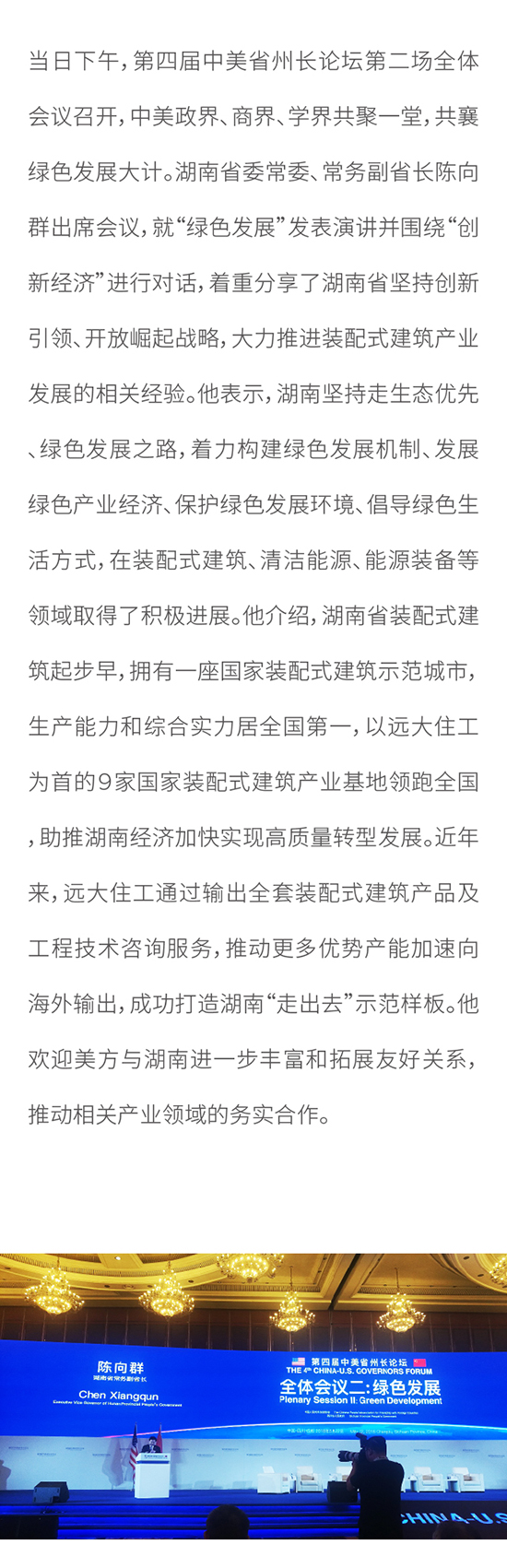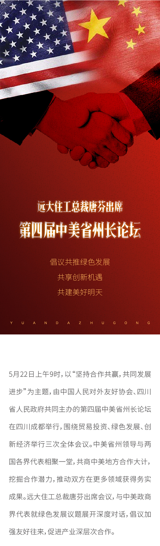 遠(yuǎn)大住工總裁唐芬出席第四屆中美省州長論壇 倡議共推綠色發(fā)展 共享創(chuàng)新機(jī)遇 共建美好明天