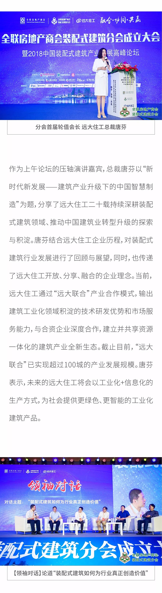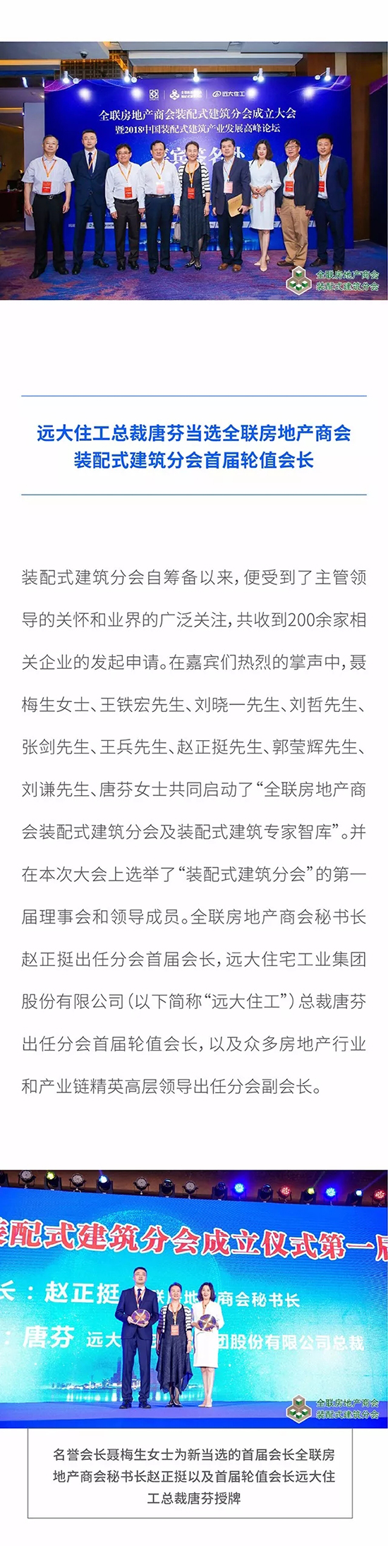 全聯(lián)房地產(chǎn)商會裝配式建筑分會成立大會盛大召開 遠大住工總裁唐芬當選首屆輪值會長