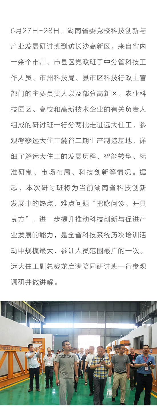 推動(dòng)湖南科技創(chuàng)新發(fā)展 省委黨??萍紕?chuàng)新與產(chǎn)業(yè)發(fā)展研討班走進(jìn)遠(yuǎn)大住工