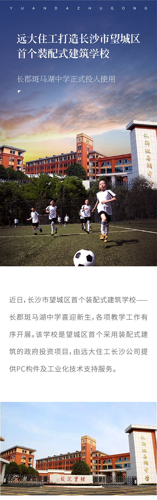 遠(yuǎn)大住工打造長(zhǎng)沙市望城區(qū)首個(gè)裝配式建筑學(xué)校 長(zhǎng)郡斑馬湖中學(xué)正式投入使用