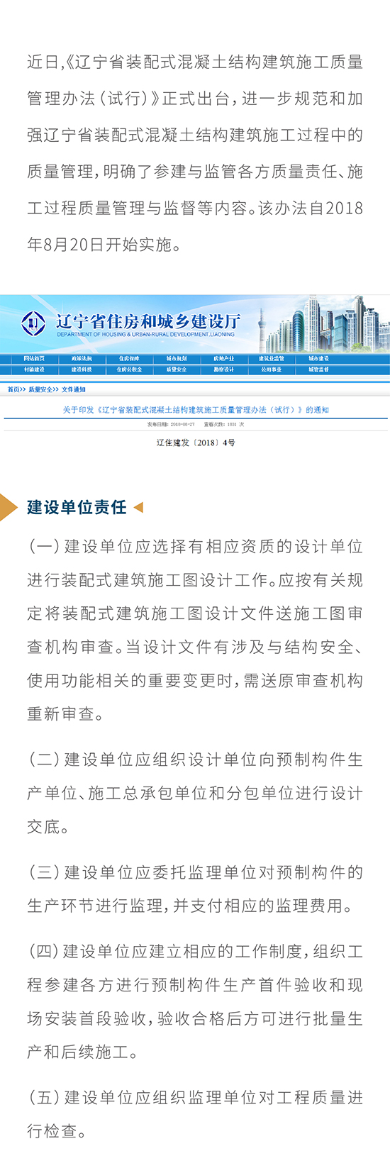 《遼寧省裝配式混凝土結(jié)構(gòu)建筑施工質(zhì)量管理辦法(試行)》出臺(tái)施行
