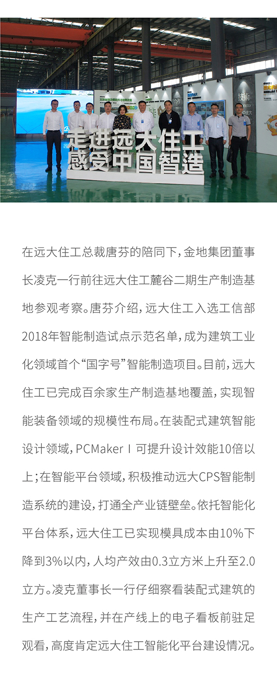加強交流合作 促進建筑產業(yè)科技創(chuàng)新 金地集團董事長凌克一行赴遠大住工參觀考察