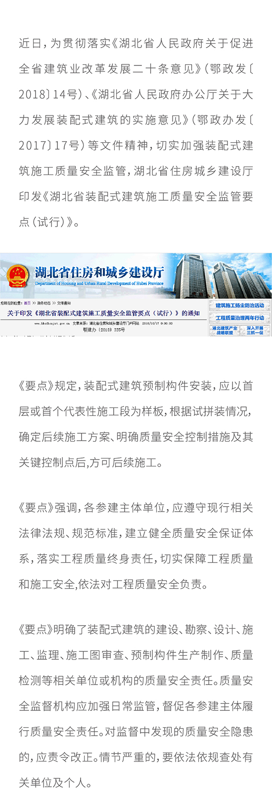 最新:《湖北省裝配式建筑施工質(zhì)量安全監(jiān)管要點(diǎn)(試行)》出臺(tái)