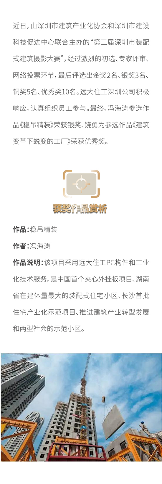 2018年第三屆深圳市裝配式建筑攝影比賽評選結(jié)果揭曉 遠(yuǎn)大住工深圳公司喜獲佳績