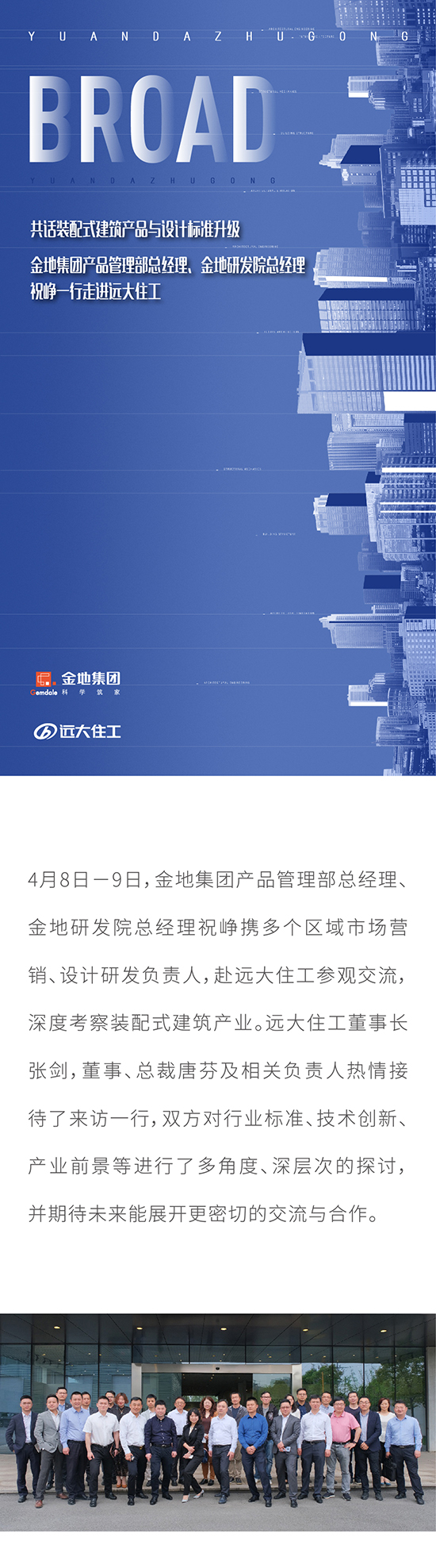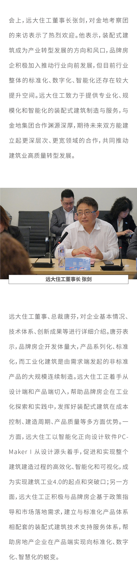 共話裝配式建筑產(chǎn)品與設(shè)計(jì)標(biāo)準(zhǔn)升級(jí) 金地集團(tuán)產(chǎn)品管理部總經(jīng)理、金地研發(fā)院總經(jīng)理祝崢一行走進(jìn)遠(yuǎn)大住工
