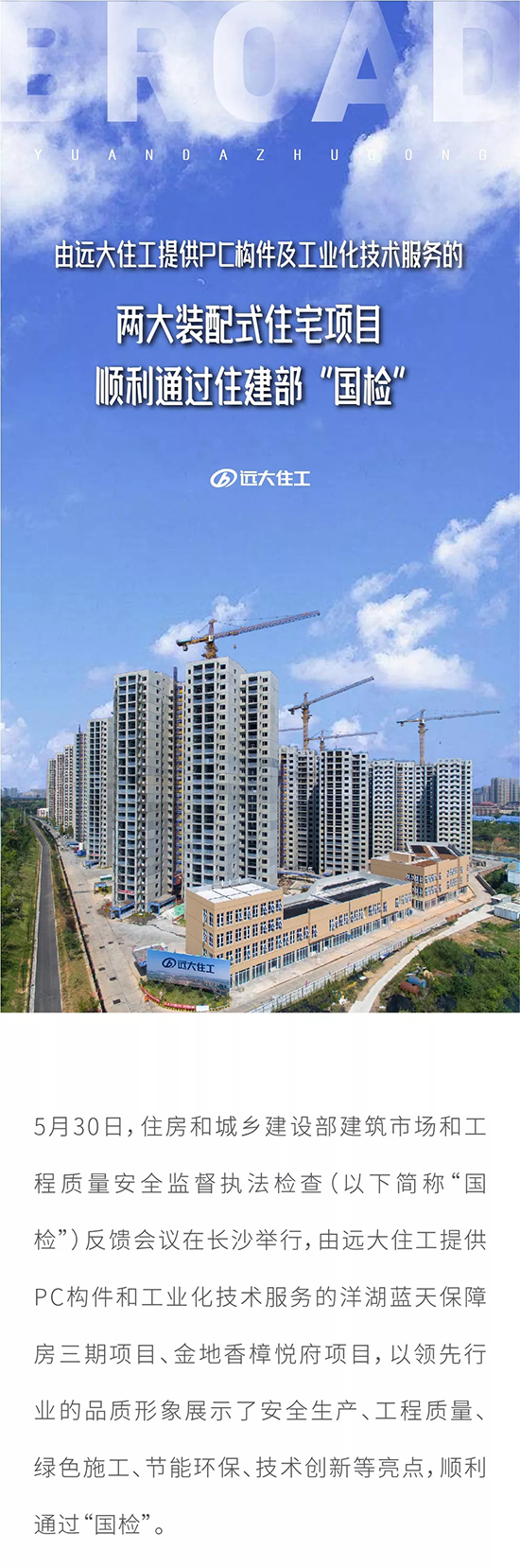 由遠(yuǎn)大住工提供PC構(gòu)件及工業(yè)化技術(shù)服務(wù)的兩大裝配式住宅項目順利通過住建部“國檢”