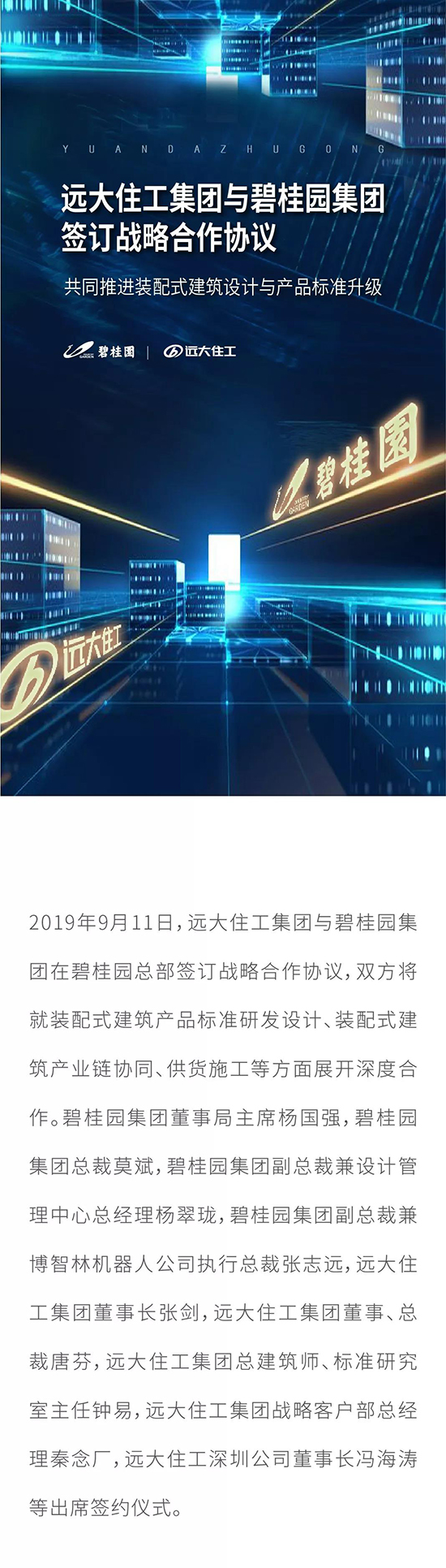 遠(yuǎn)大住工集團(tuán)與碧桂園集團(tuán)簽訂戰(zhàn)略合作協(xié)議 共同推進(jìn)裝配式建筑設(shè)計(jì)與產(chǎn)品標(biāo)準(zhǔn)升級(jí)