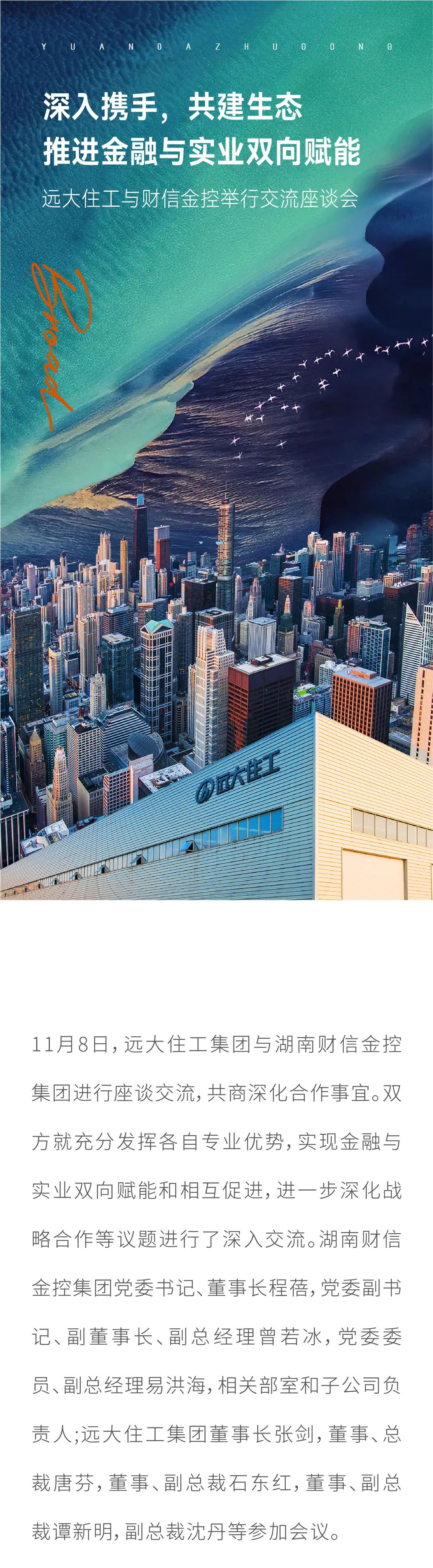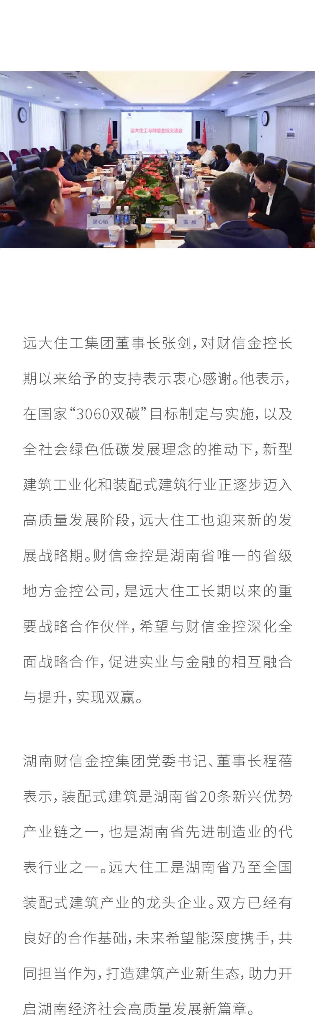 深入攜手,共建生態(tài),推進(jìn)金融與實(shí)業(yè)雙向賦能 遠(yuǎn)大住工與財(cái)信金控舉行交流座談會(huì)
